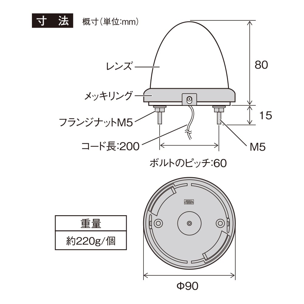DC12V/24V共用/アンバー光/LED光源/ボルトアースタイプ